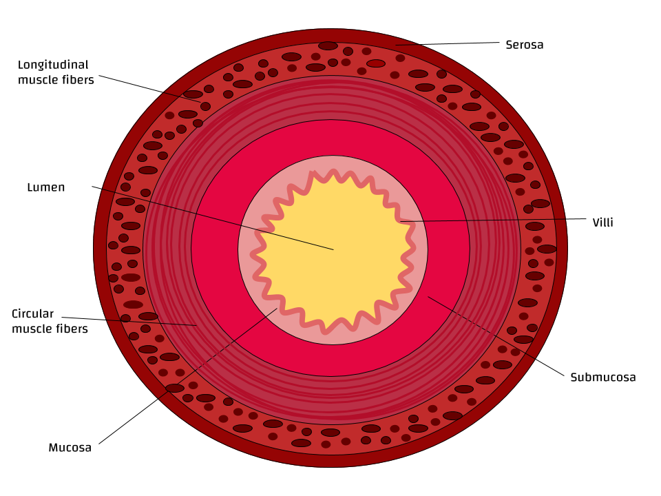 - Muscularis propria (contains circular/circumferential and longitudinal muscle fibers)