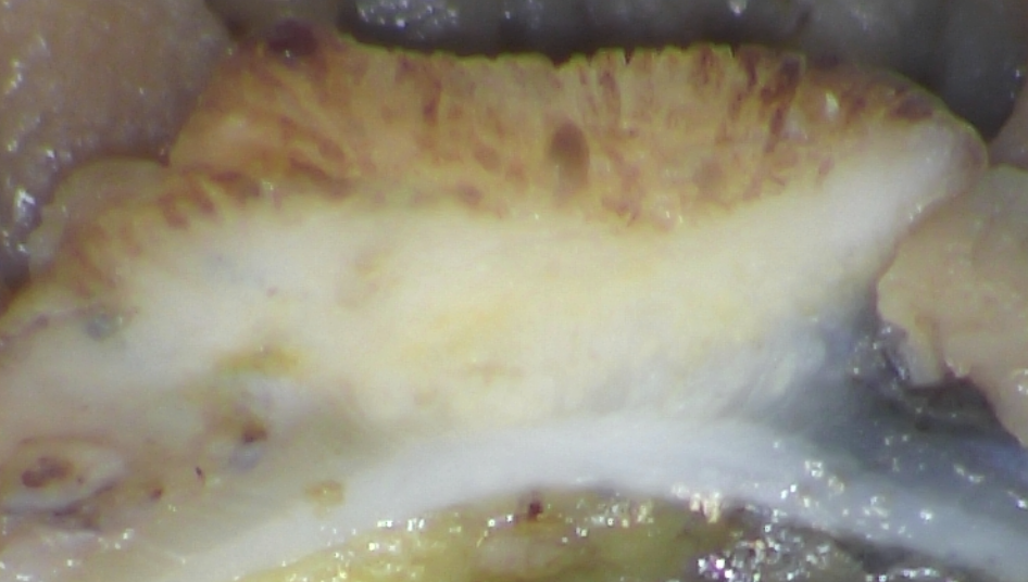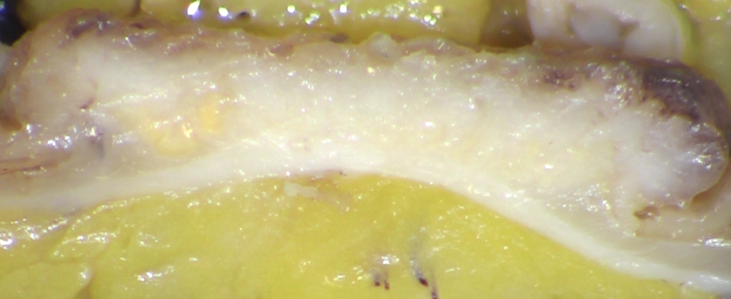 Grossly, this can be subtle. You may see a mucosal mass. When you section through it, the key question is: