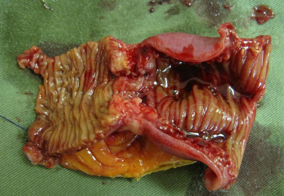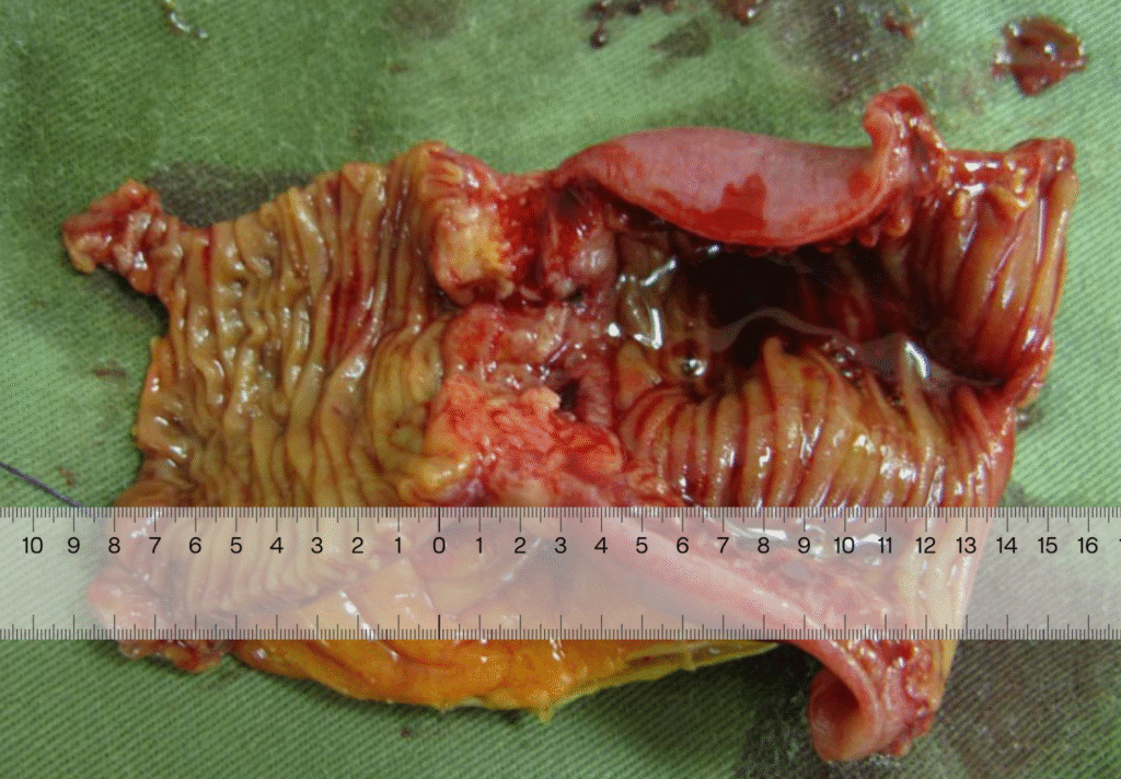 Gross pathology of small intestinal adenocarcinoma, luminal view. Xilin Wu1, Hester Y. S. Cheung, Cliff C. C. Chung, Michael K. W. Li, CC BY 4.0 <https://creativecommons.org/licenses/by/4.0>, via Wikimedia Commons