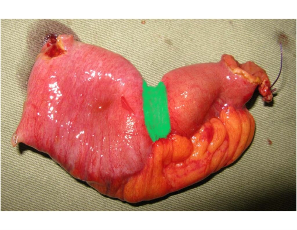 Gross pathology of small intestinal adenocarcinoma, serosal view. Xilin Wu1, Hester Y. S. Cheung, Cliff C. C. Chung, Michael K. W. Li, CC BY 4.0 <https://creativecommons.org/licenses/by/4.0>, via Wikimedia Commons