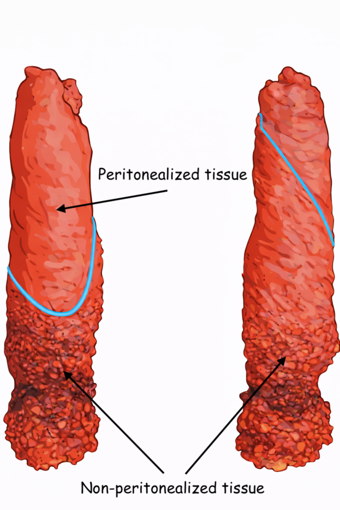 • Struggling to identify peritonealized vs non-peritonealized tissue → aka where the radial margin actually is